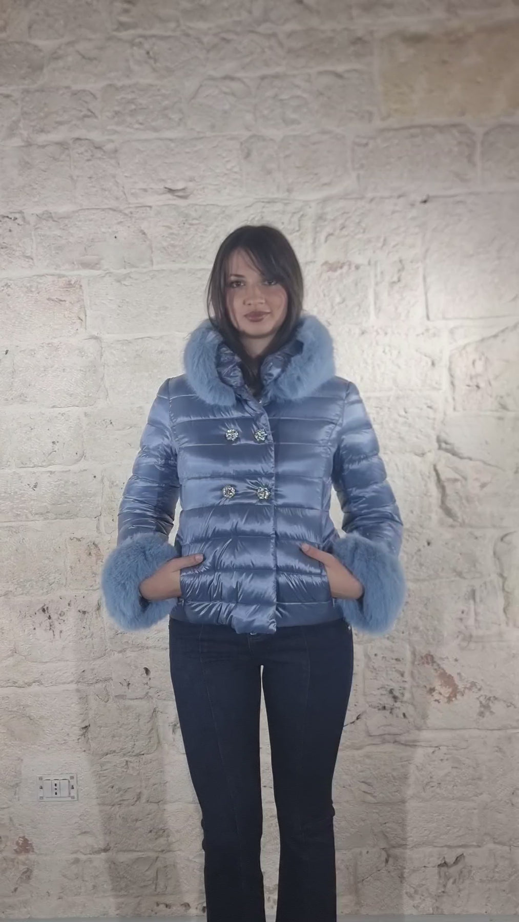 Il Piumino doppiopetto corto Nosecrets unisce eleganza e versatilità con i suoi bottoni gioiello intercambiabili con quelli in tessuto. Perfetto per chi cerca stile e praticità, dona un tocco raffinato a ogni outfit mantenendo calore e comfort. Pelliccia eco staccabile sia sul collo e sul bordo maniche. Ideale per affrontare le giornate fredde con classe senza rinunciare a un dettaglio unico e trasformabile.