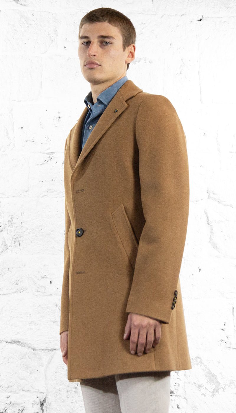 Cappotto cammello Manuel Ritz modello monopetto in panno con collo revers.