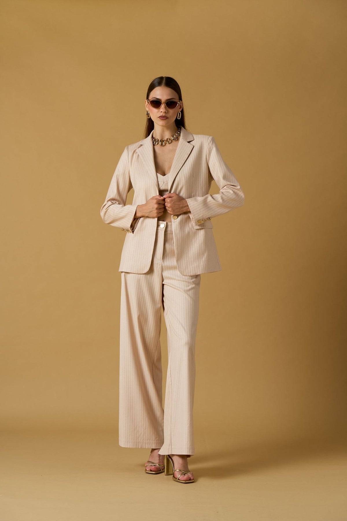 Nosecrets Milano Blazer gessato oro in tessuto con cintura