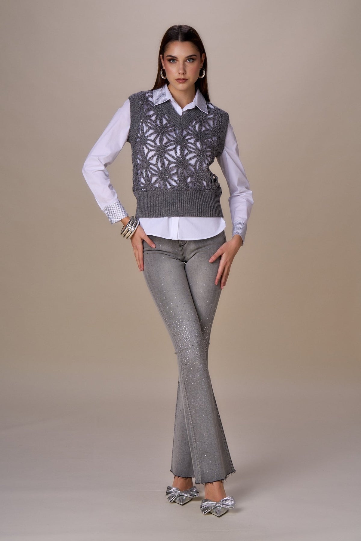 Nosecrets Jeans a zampa con strass Jeans - Boutique Luisa Trendy