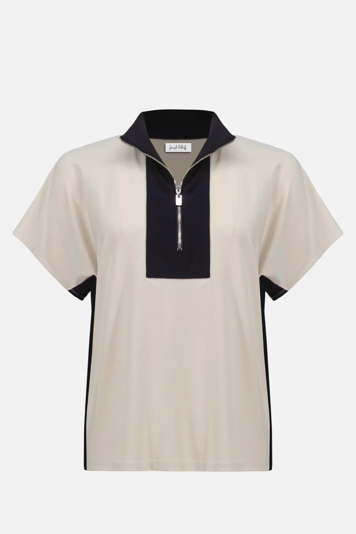 Jospeh Ribkoff Top dritta in maglia effetto seta a color block con collo con zip T-Shirt e top - Boutique Luisa Trendy