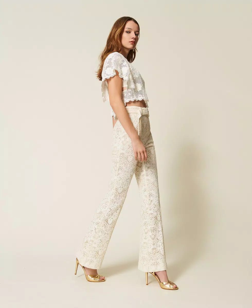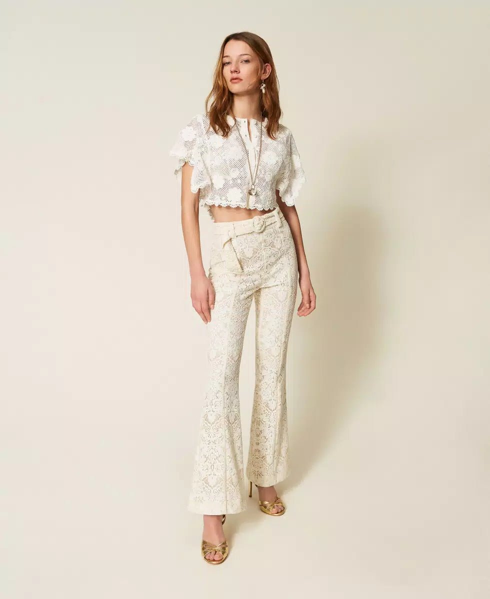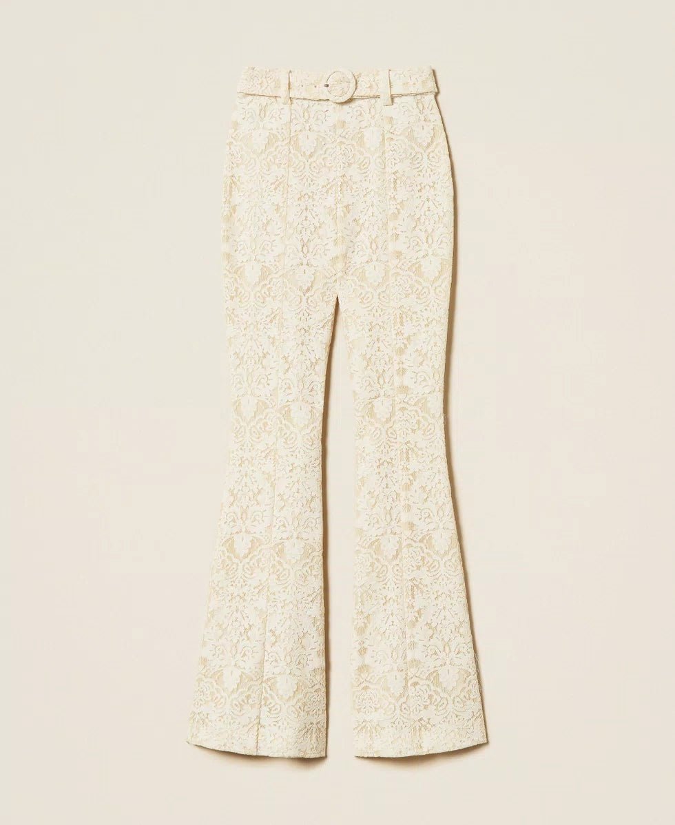 Twinset Pantaloni flare in pizzo con cintura Pantalone Donna - Boutique Luisa Trendy