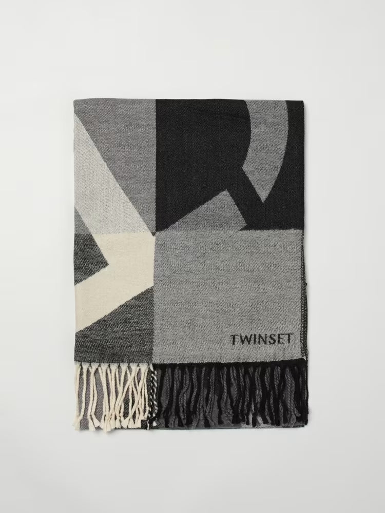 Twinset Stola in panno jacquard con Oval T