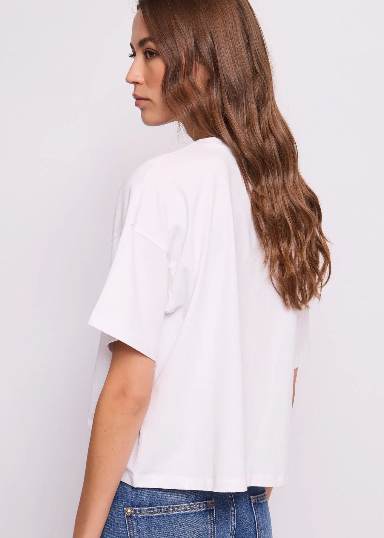 Scegli la t-shirt Gaudi Jeans girocollo in jersey di cotone elasticizzato con logo e strass sul davanti. Per un look casual leggero, luminoso e trendy.