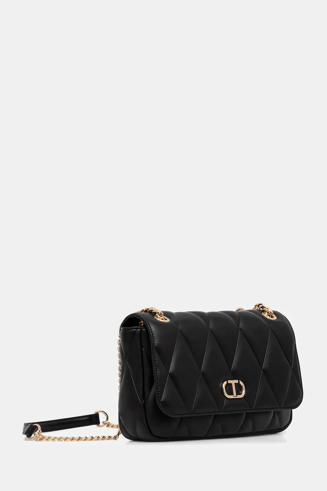 Borsa a tracolla effetto nappa di vitello con lavorazione termosaldata quilted mediante imbottitura in ovatta leggera all’interno. Ha tracolla in catena scorrevole con spallacci, da indossare a spalla o cross-body, chiusura con patta e magnete, logo Oval T in metallo davanti, foderata