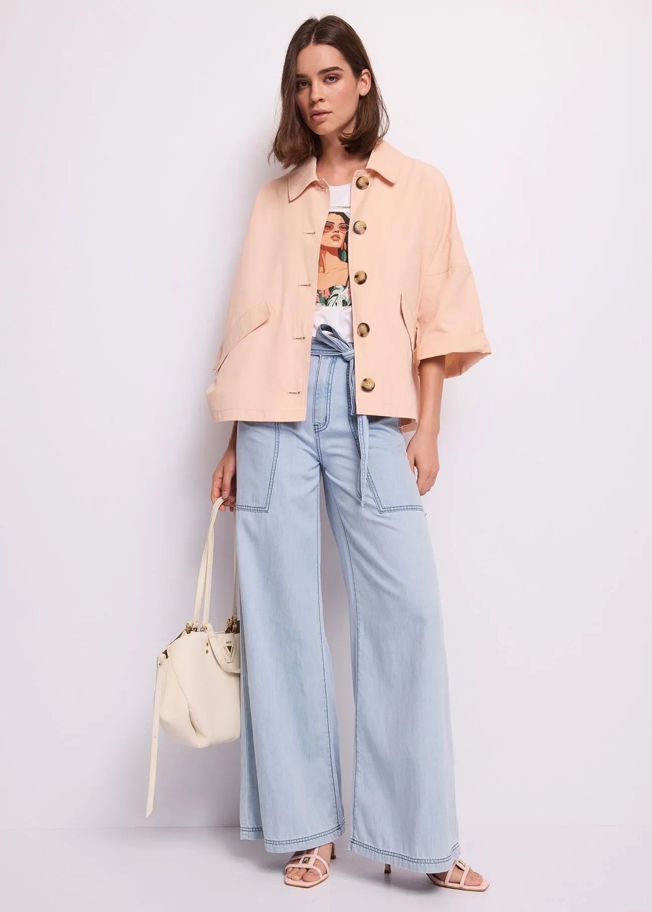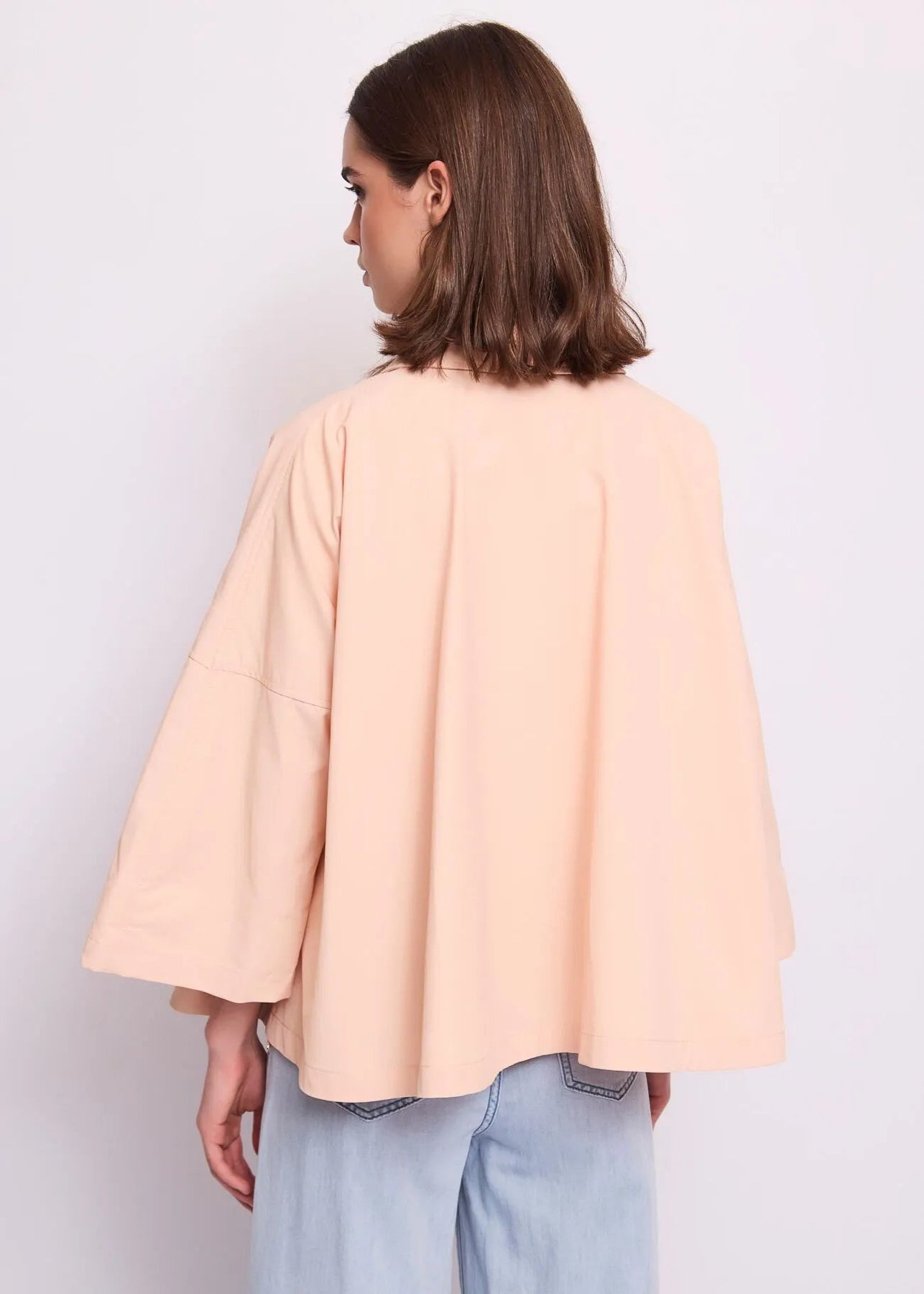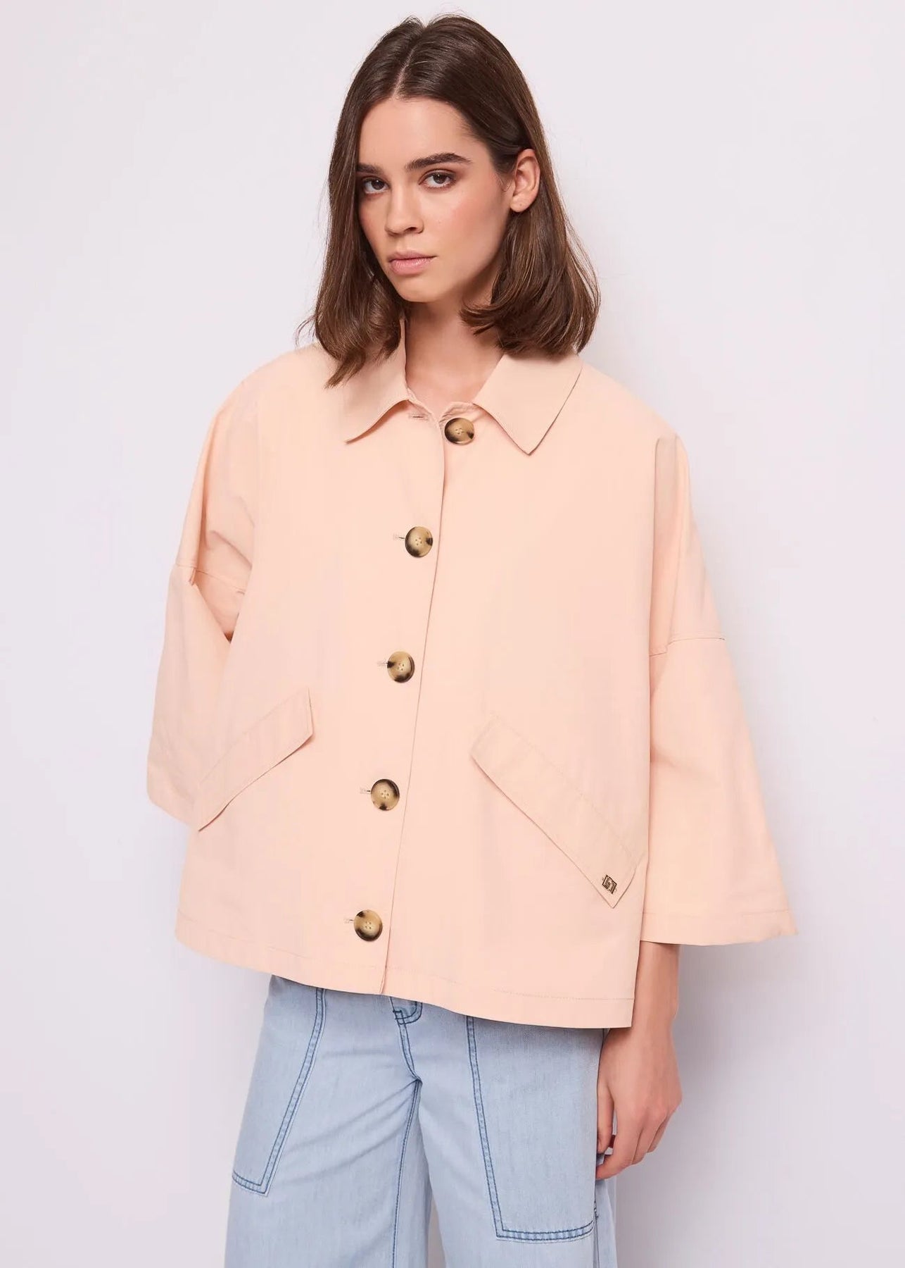 Scegli la giacca Gaudi in tessuto spalmato con collo a camicia, tasche con patta e maniche a kimono. Per un'eleganza disinvolta e moderna.